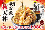 「ごちそうシリーズ」で定番の「天然大海老」「活〆一本穴子」に、大粒の「播磨灘産牡蠣」、「大葉」を使用した『秋ご馳走天丼』を販売いたします。