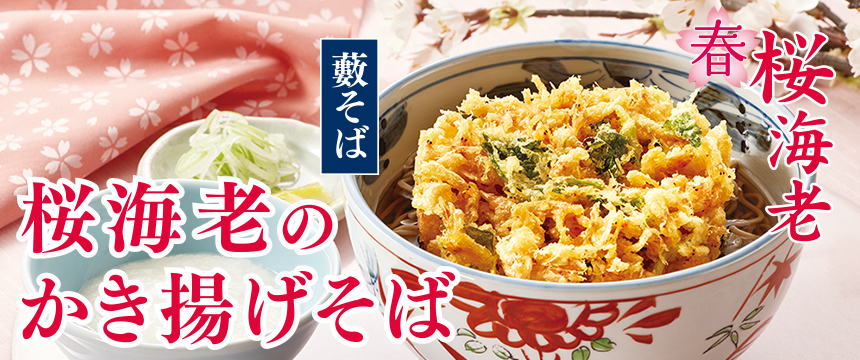 てんやの麺シリーズ第7弾として、春の訪れを感じさせる「桜海老」を昨年より増量し、香ばしくサクサクと軽い食感のかき揚げに仕上げ、てんや自慢の藪そばと合わせた一杯。よりさっぱりとお召し上がりいただける「北海道産とろろ」を付けた食べ方がおすすめです。昨年末、藪そばにより合うよう改良したこだわりの「新・麺つゆ」とともにお楽しみください。