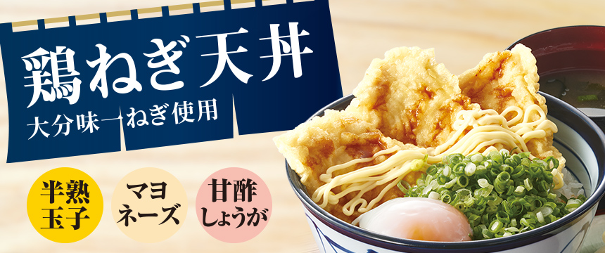 単品天ぷらで人気のしっとりジューシーな「とり天」にマヨネーズをトッピングし、シャキッとした歯ごたえと甘みが特徴の「大分味一ねぎ」に半熟玉子を添えた『鶏(とり)ねぎ天丼』。大分県では、「とり天」にさまざまな調味料と野菜を合わせて味わう食文化が根付いており、そのご当地スタイルから着想を得て生まれた商品です。甘みのあるシャキッとした歯ごたえの「大分味一ねぎ」、やさしい味わいの「とり天」、まろやかな半熟玉子、そしてマヨネーズのコクが絶妙に絡み合い、食欲をそそる味わいをお楽しみください。